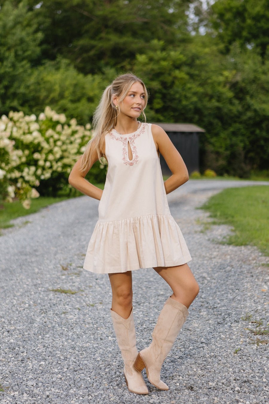 - Beige mini dress